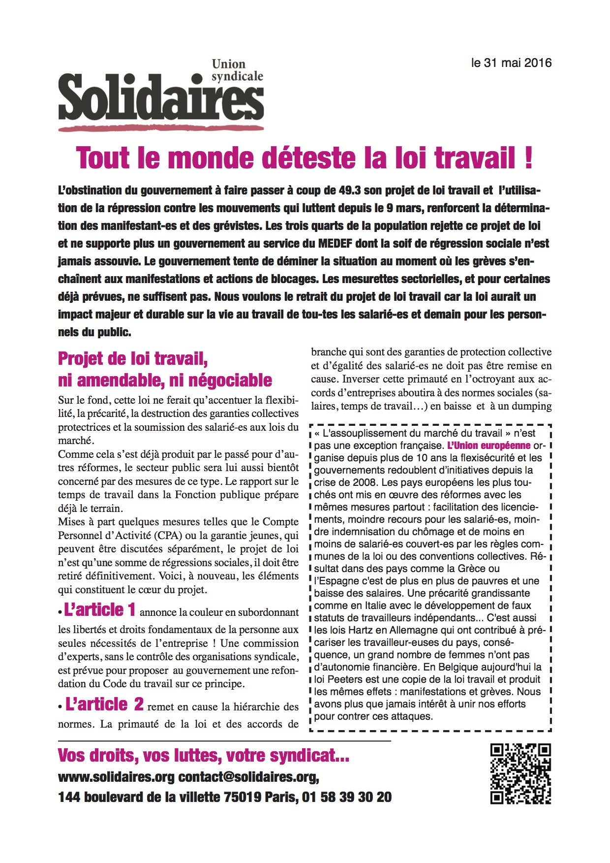 Publié le 1 juin 2016 par Syndicat SUD CT 44