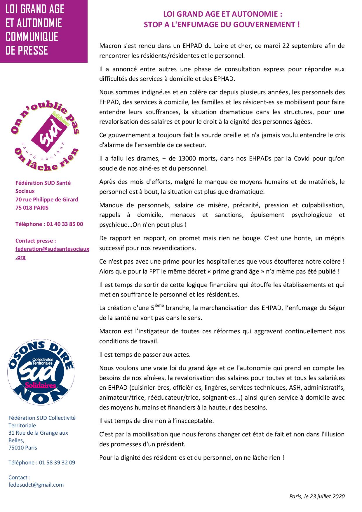 LOI GRAND AGE ET AUTONOMIE : STOP A L’ENFUMAGE DU GOUVERNEMENT !