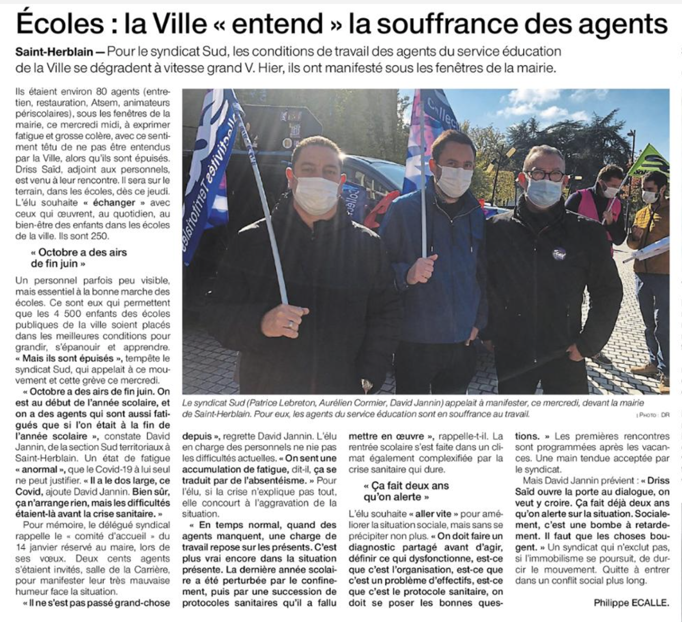 La souffrance des agents des écoles à la Ville de Saint-Herblain
