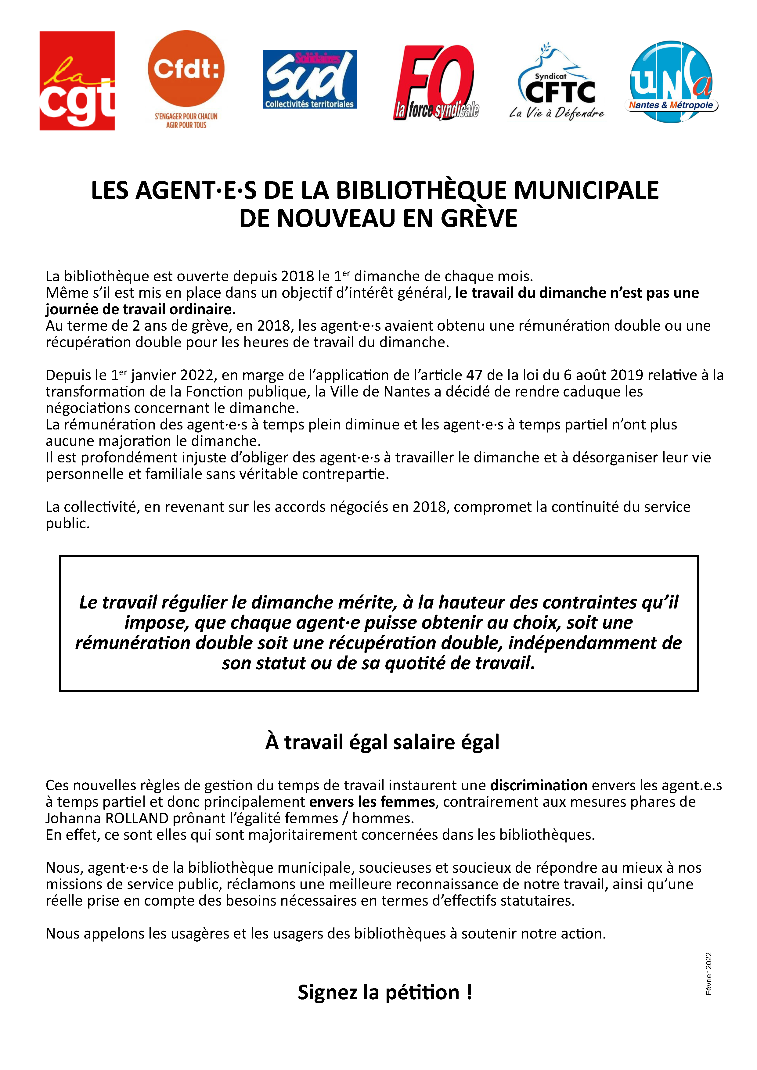 LES AGENT·E·S DE LA BIBLIOTHÈQUE MUNICIPALE DE NOUVEAU EN GRÈVE !