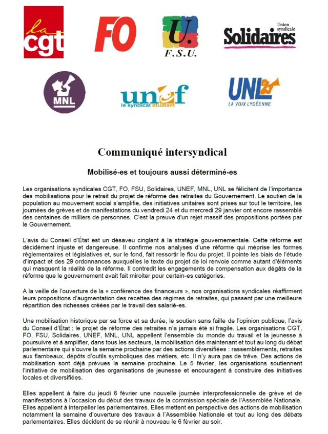 Le 6 février journée interprofessionnelle et de manifestations